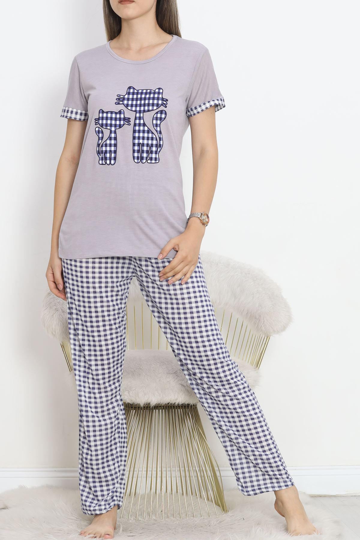 Poliviskon Bisiklet Yaka Pijama Takımı Grilaci