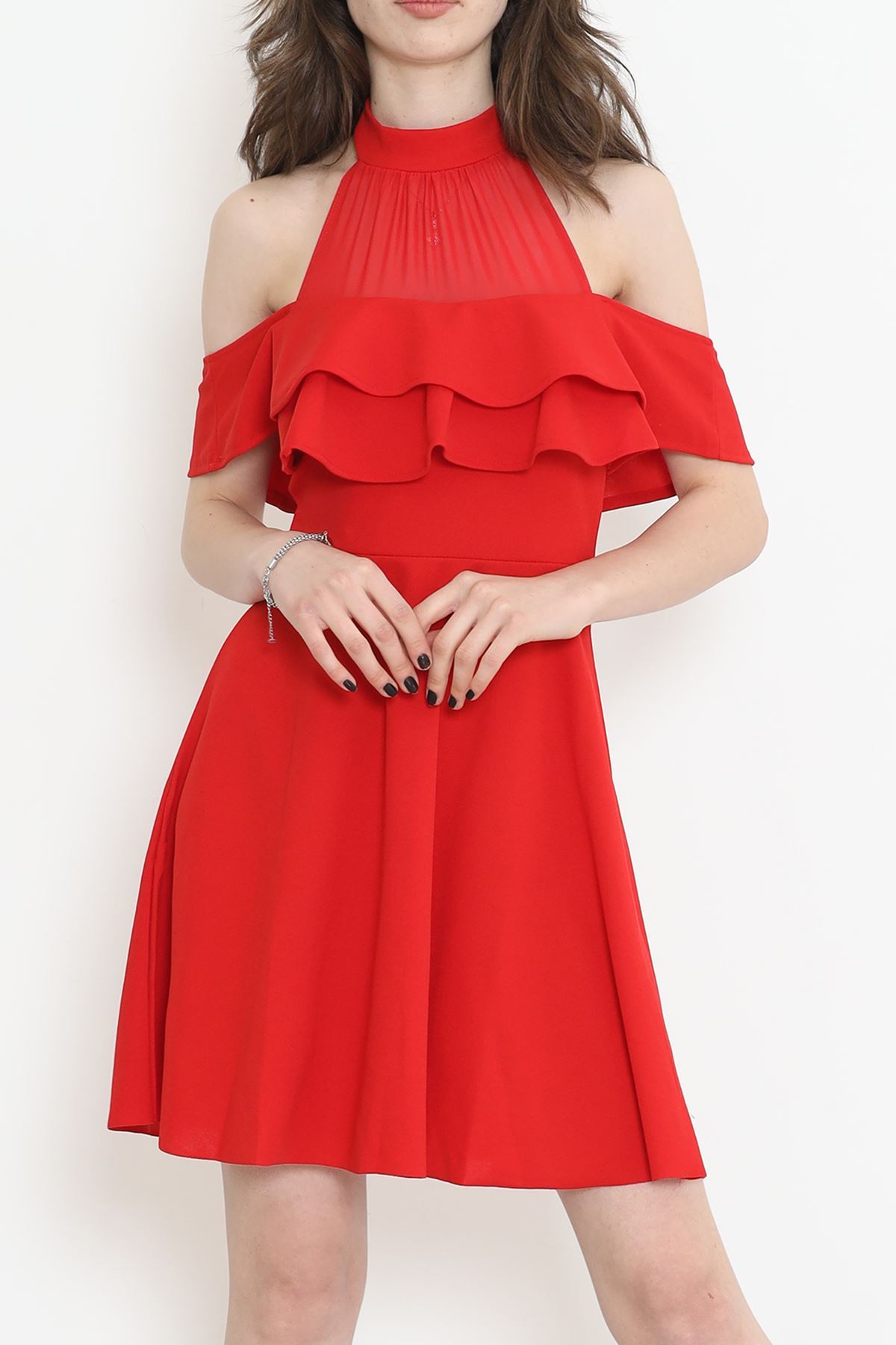 Tül Yaka Fırfırlı Elbise Kırmızı