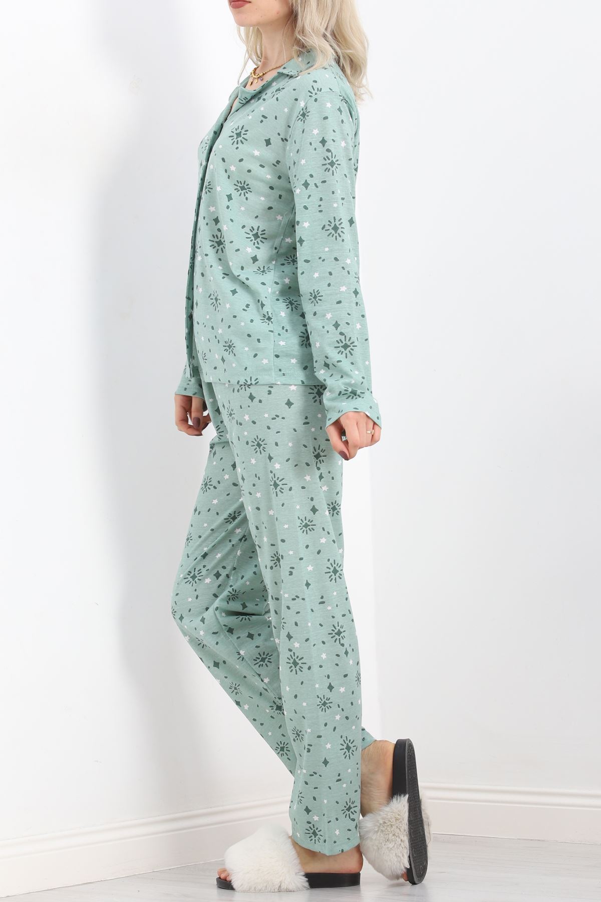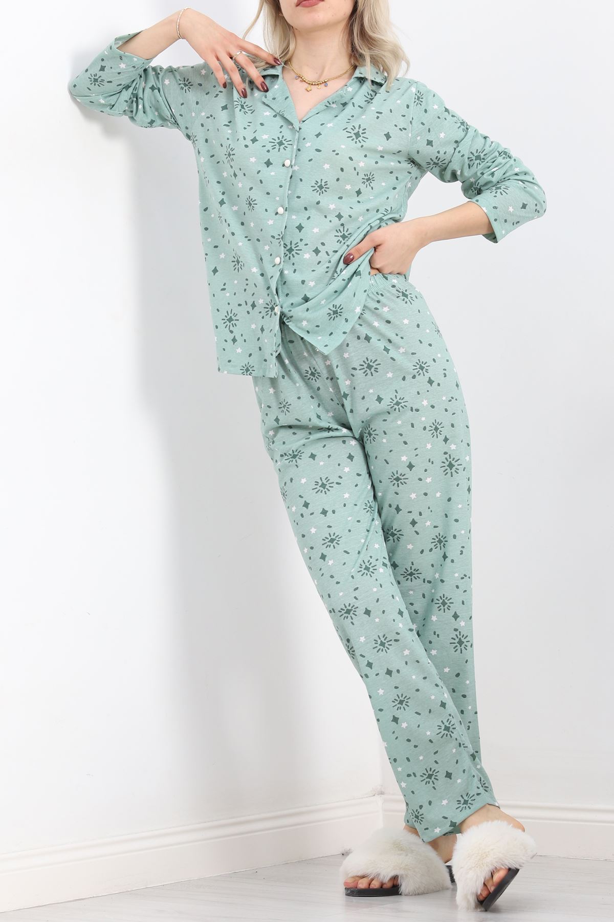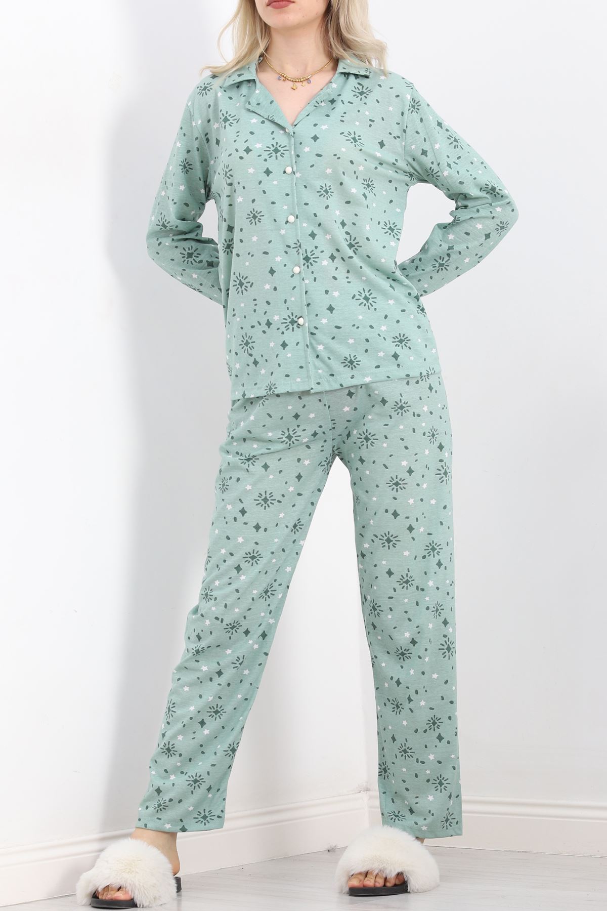 Önü Düğmeli Pijama Takımı Açıkyeşil