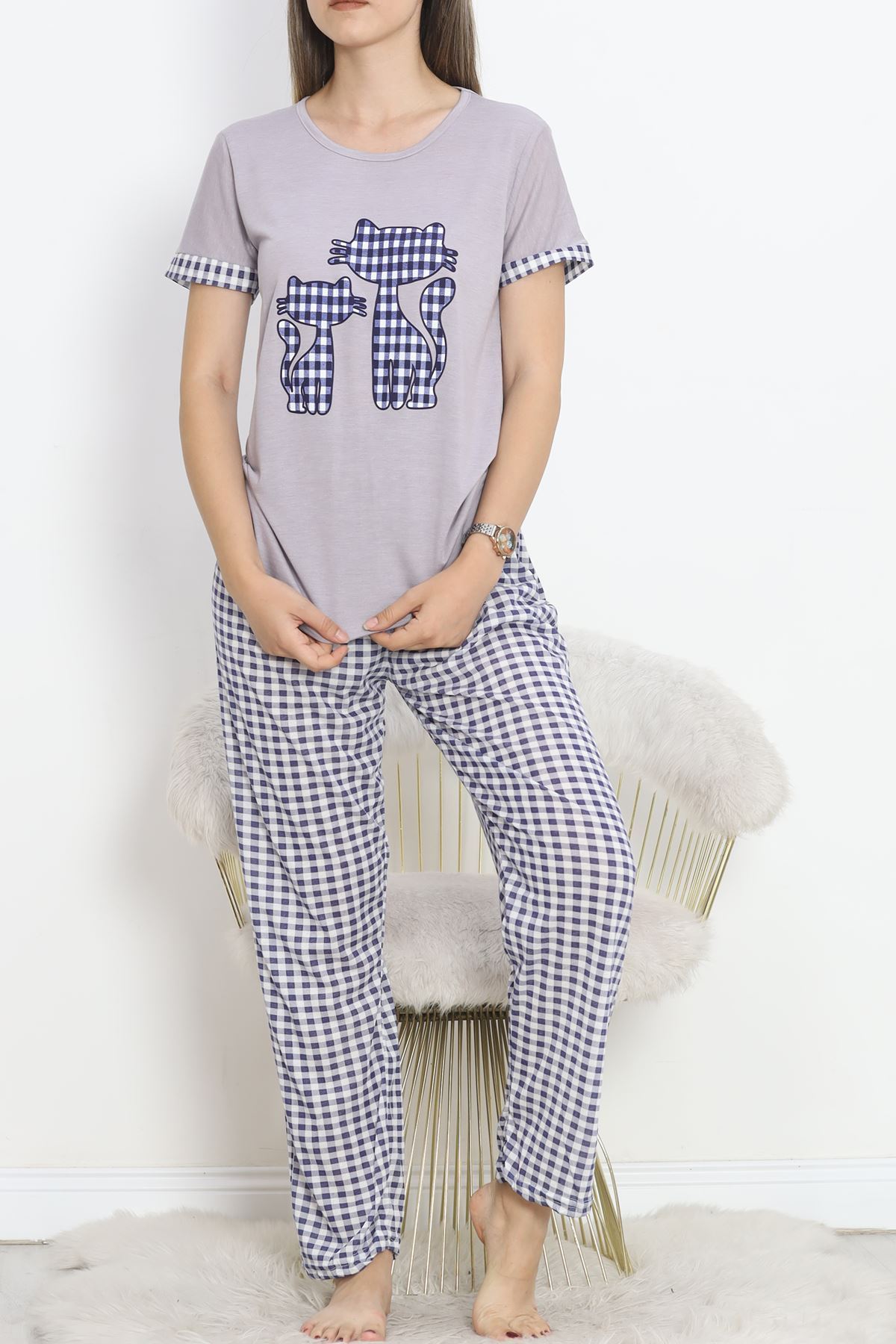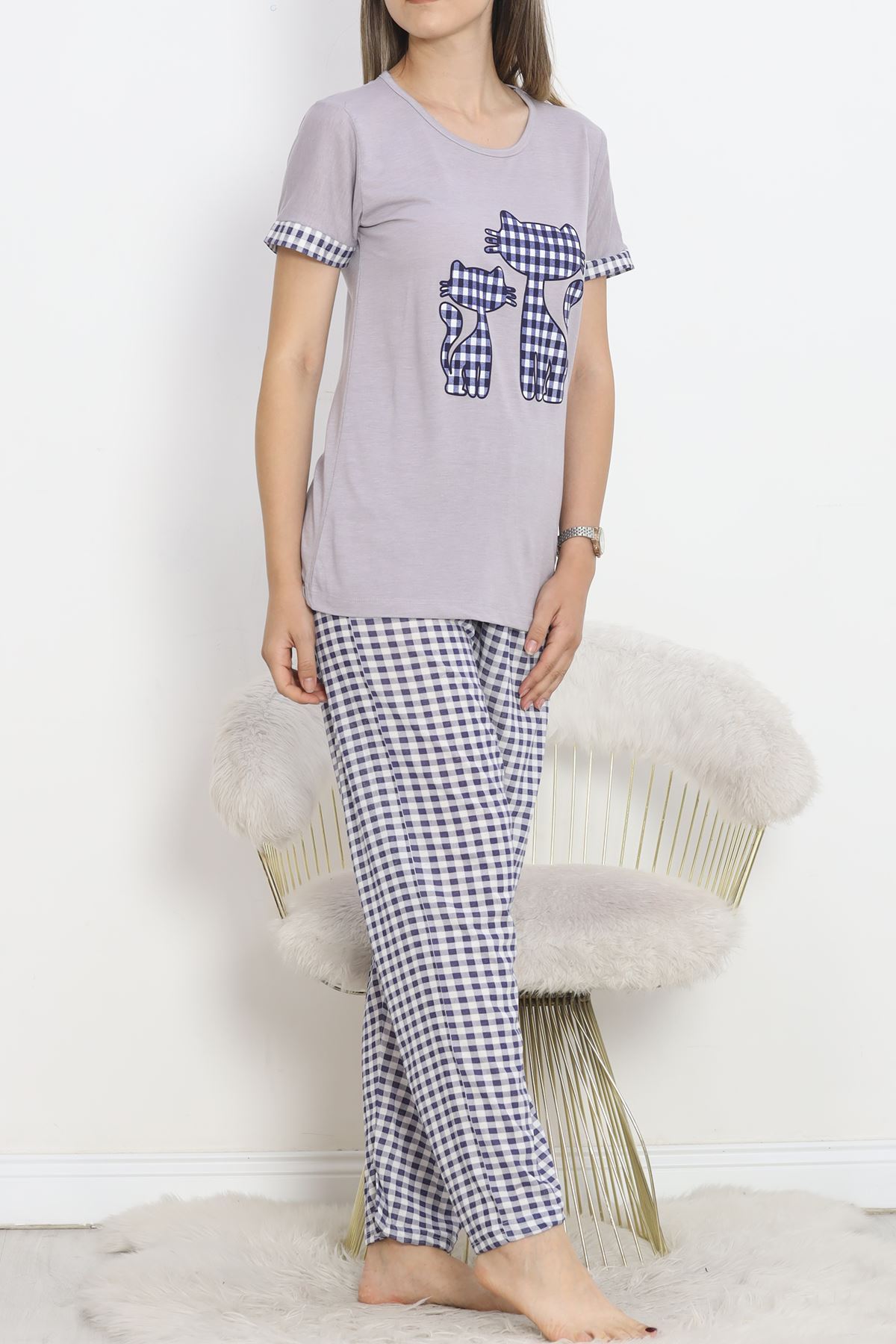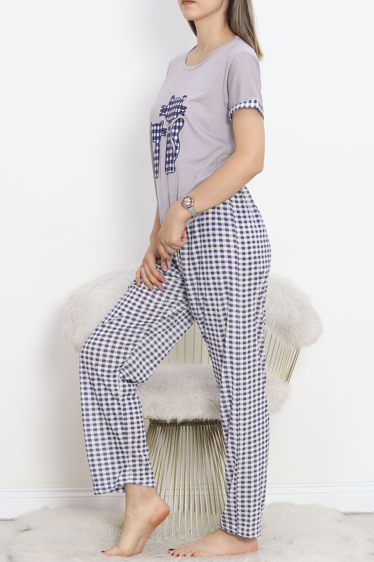 Poliviskon Bisiklet Yaka Pijama Takımı Grilaci