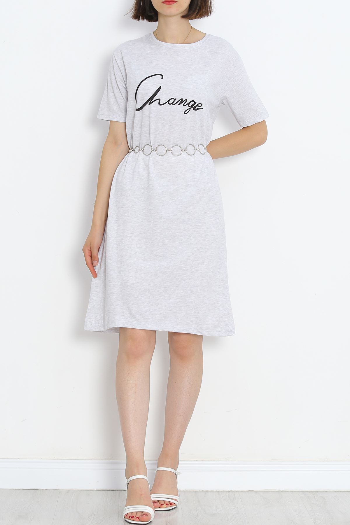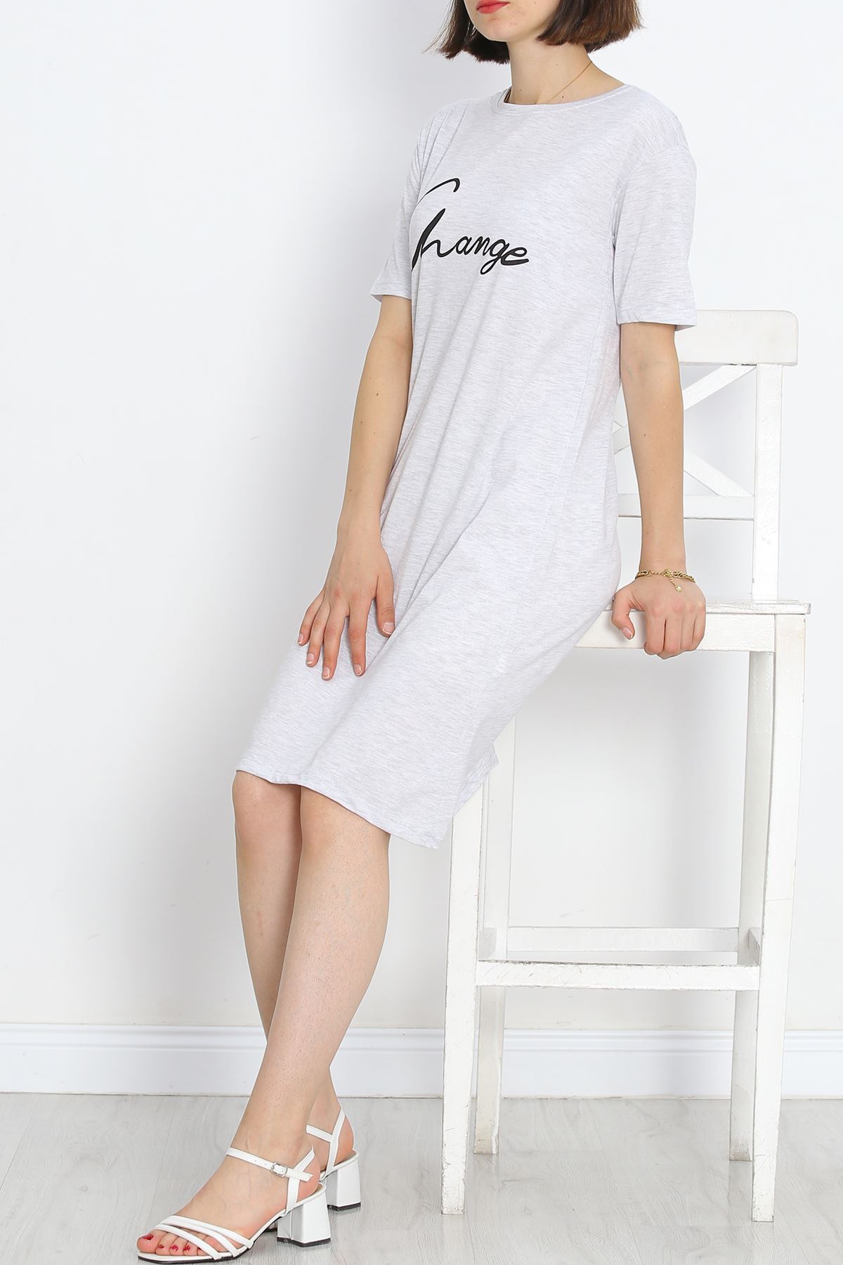 Baskılı Suprem Elbise Gri