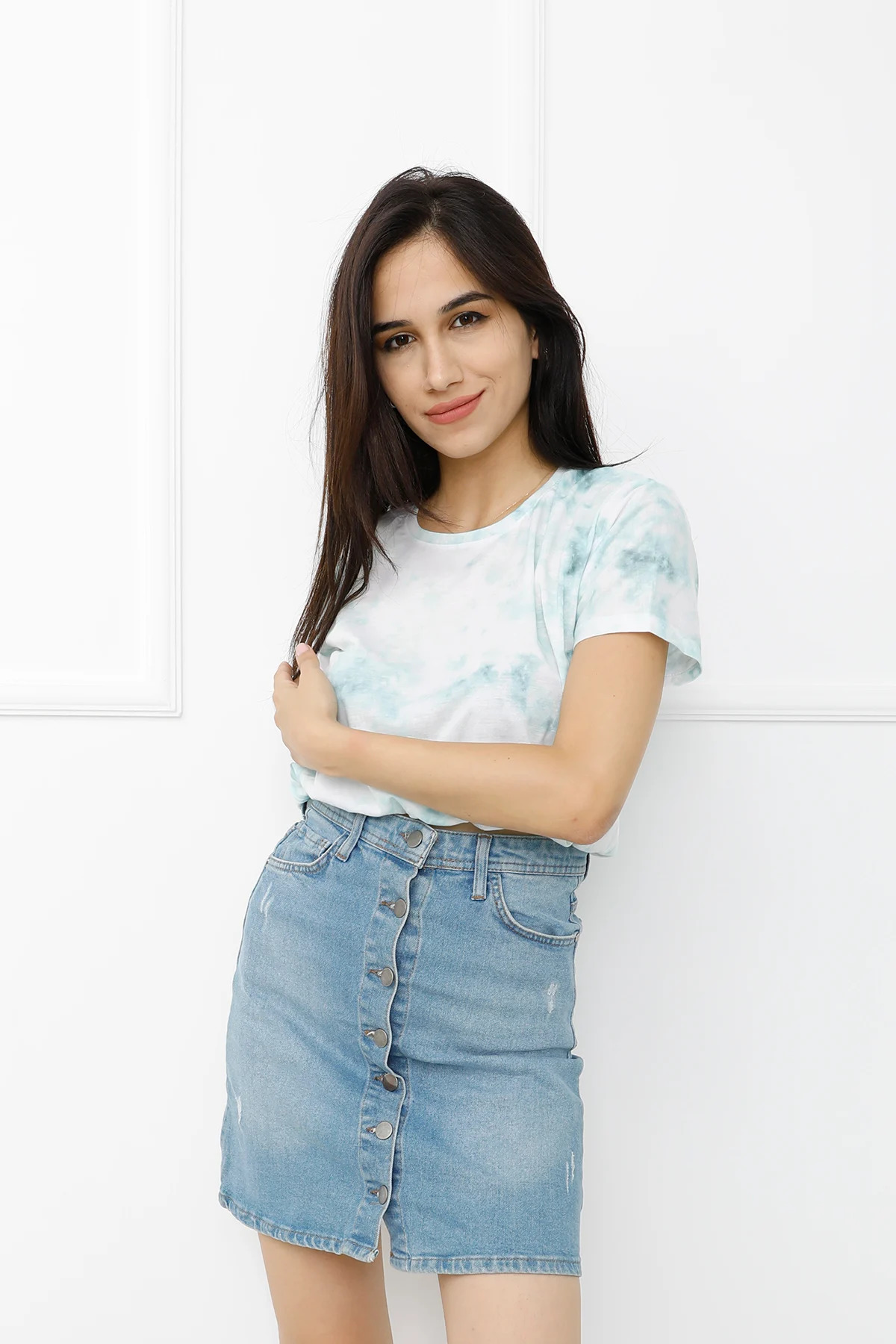 Batik Desenli Crop Mint