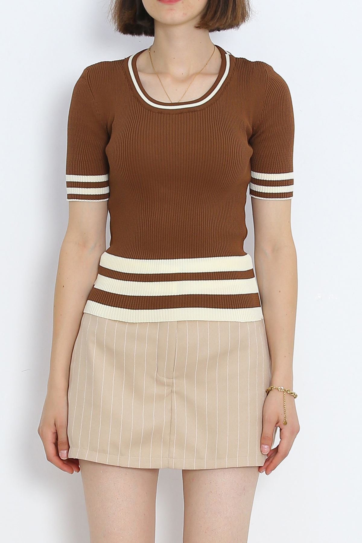Bisiklet Yaka Triko Tişört Kahve