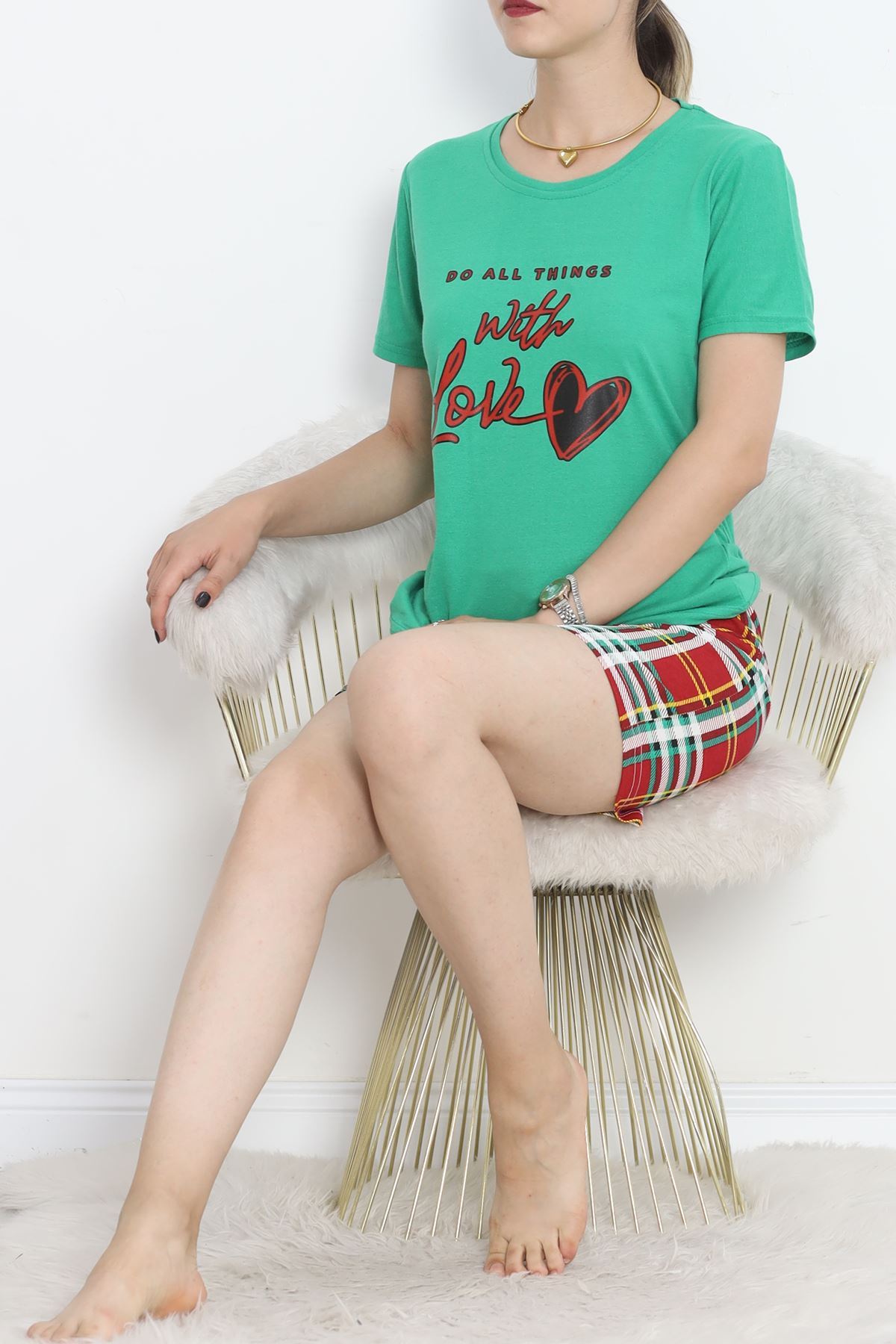 Desenli Şortlu Takım Yeşilkırmızı - 15280.1773.