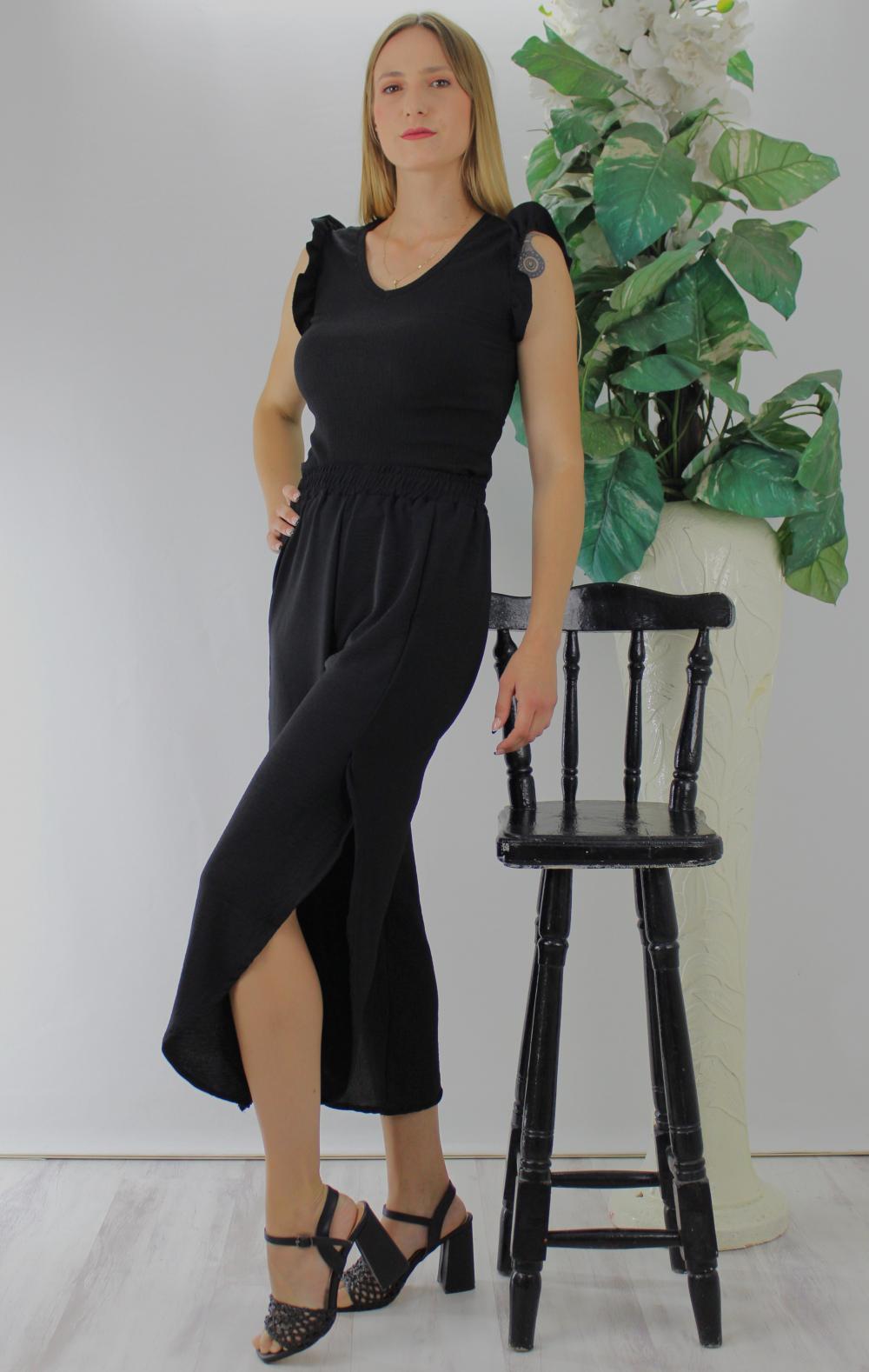 Fırfırlı Kolsuz Bluz Siyah - 1290.30