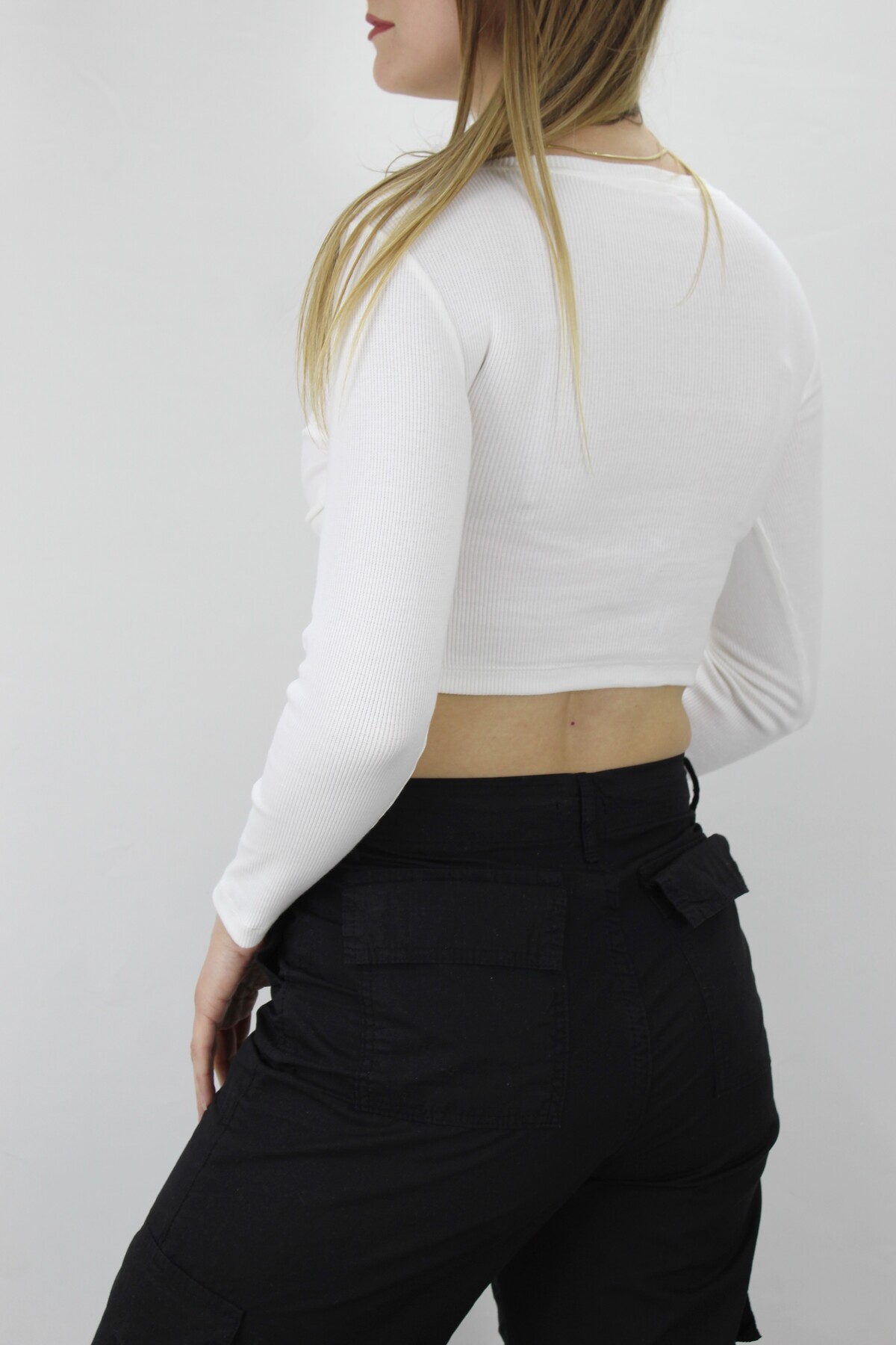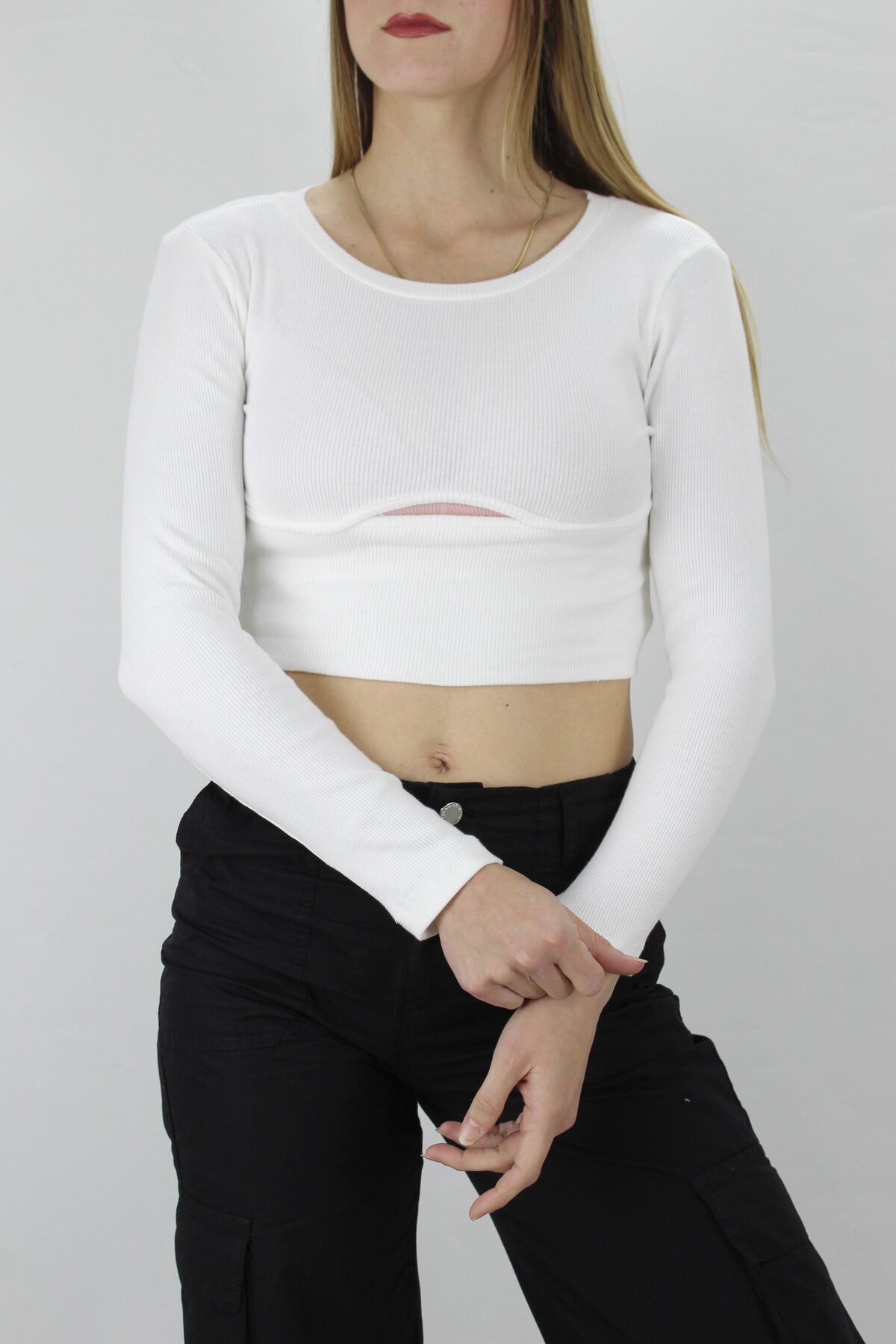 Göbeği Pencereli Kaşkorse Bluz Ekru