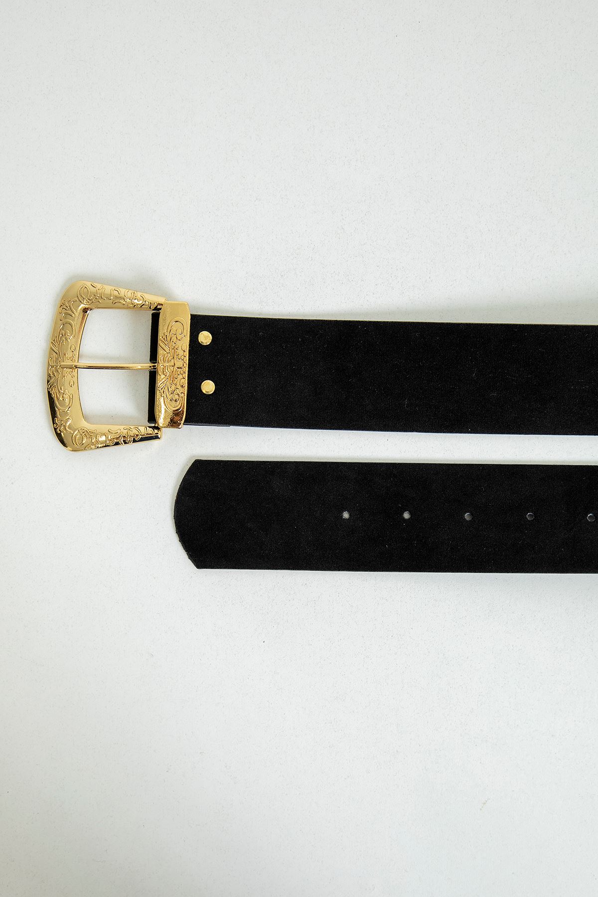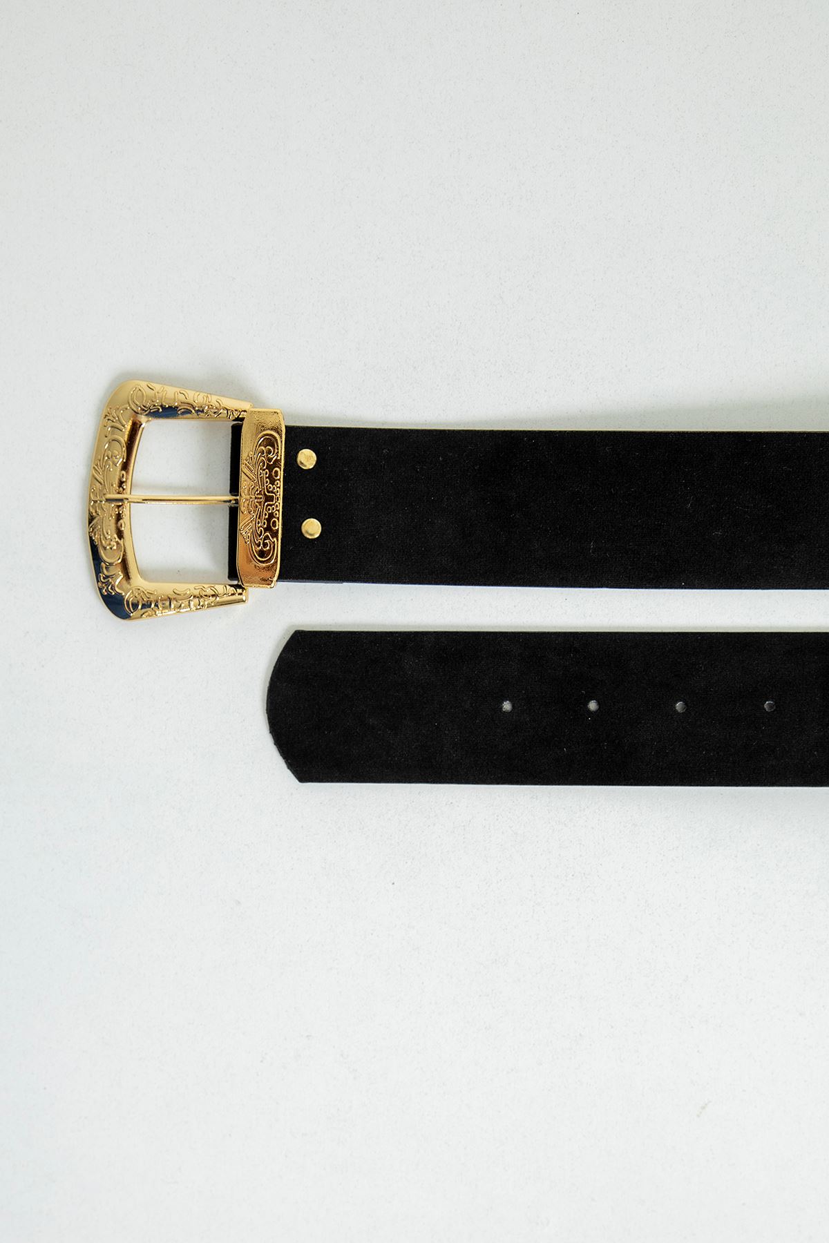 İşleme Detay Süet Kadın Kemer-Siyah