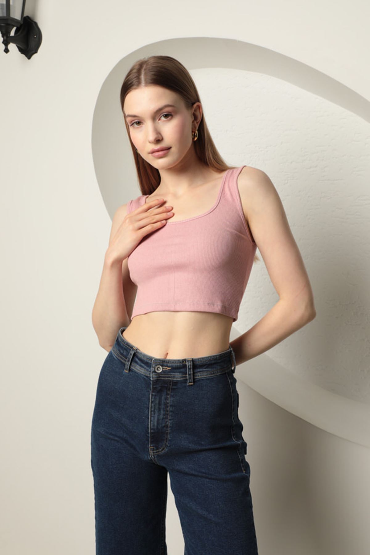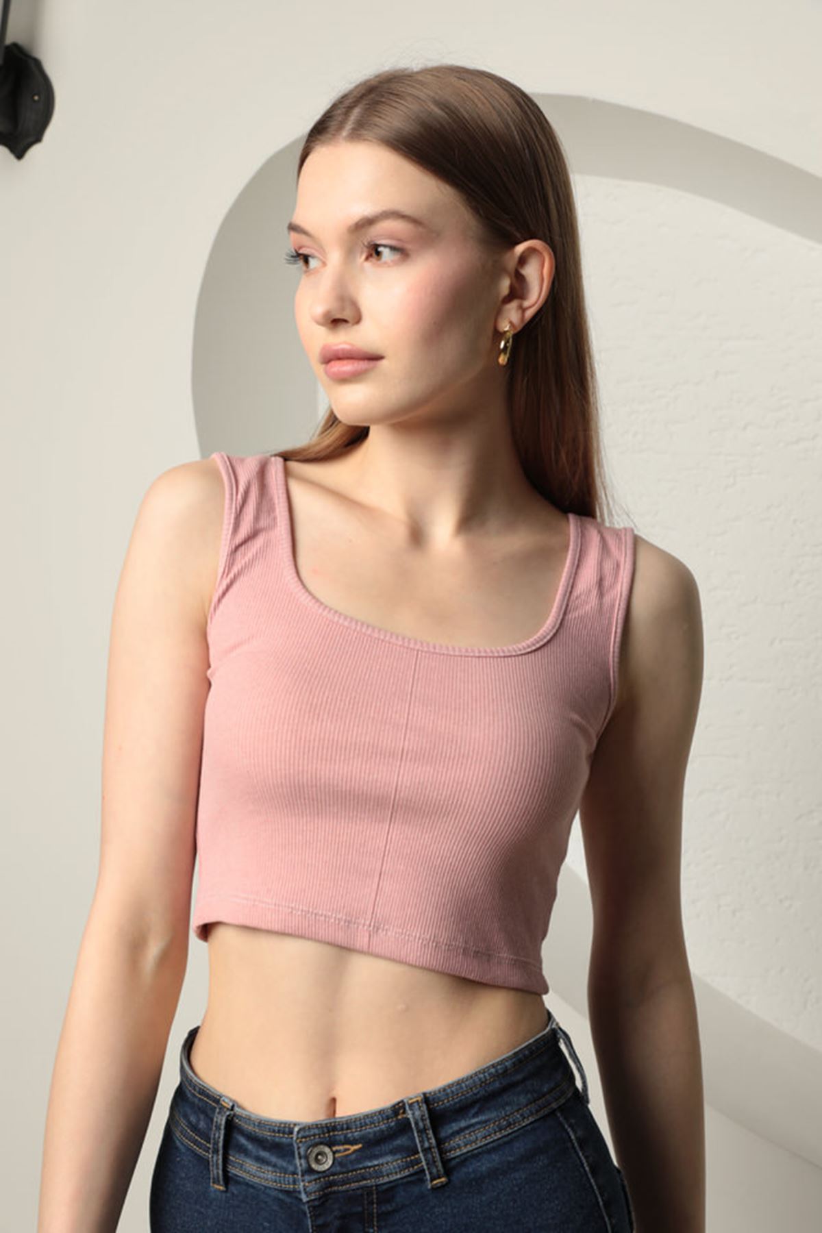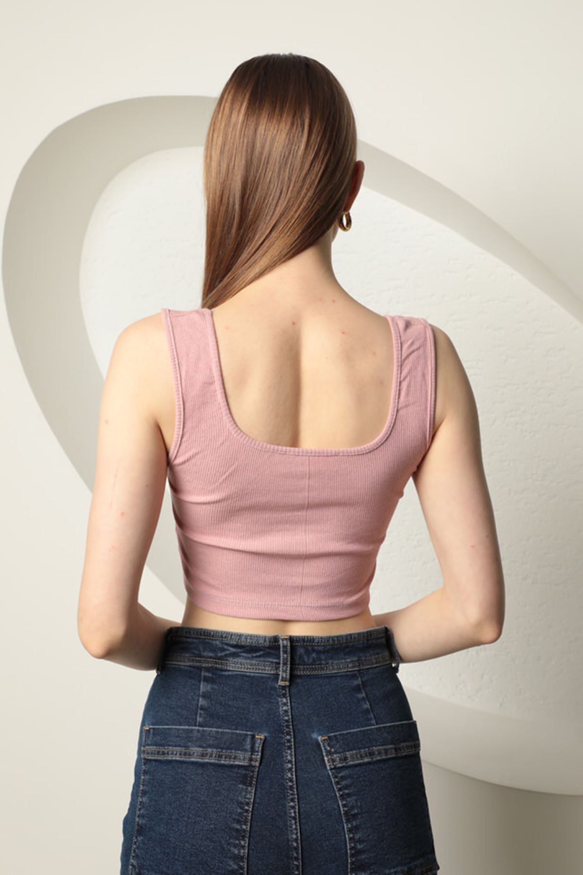 Kaşkorse Kumaş Kadın Crop-Pudra