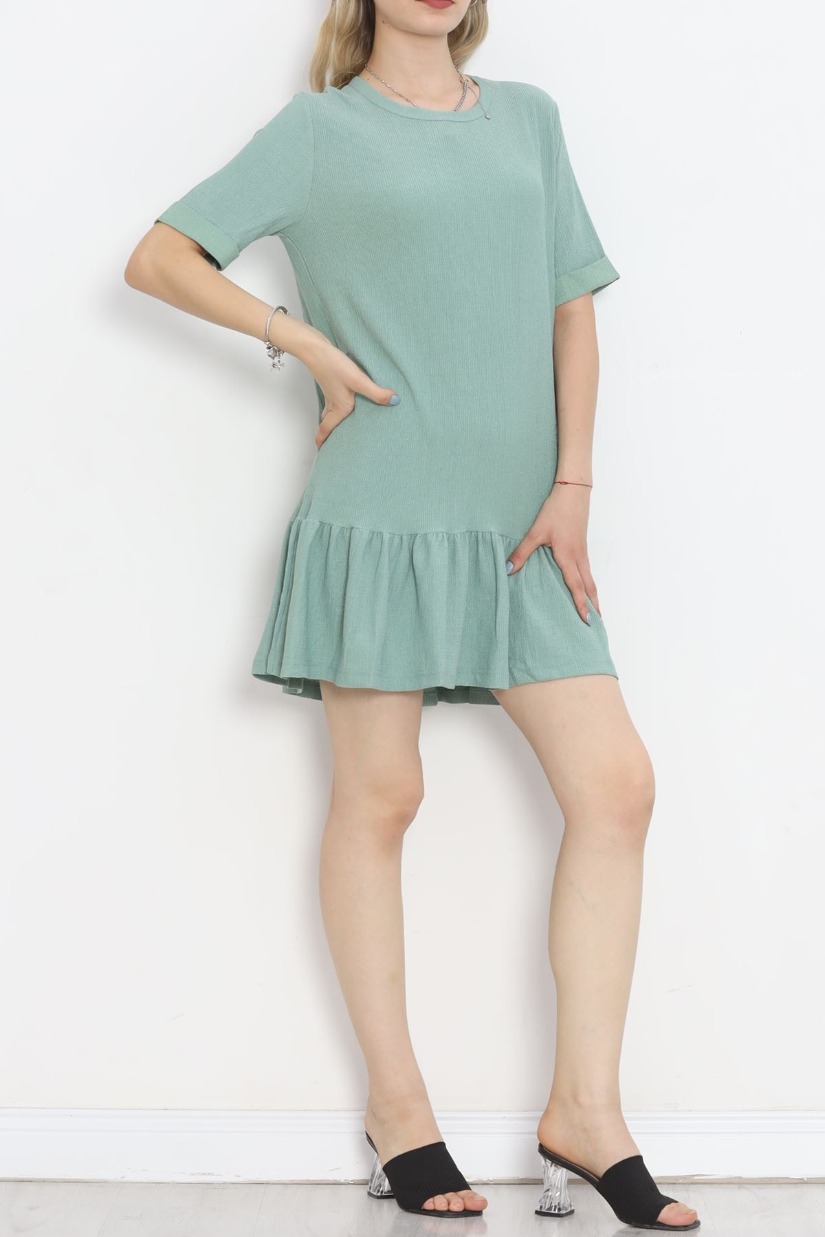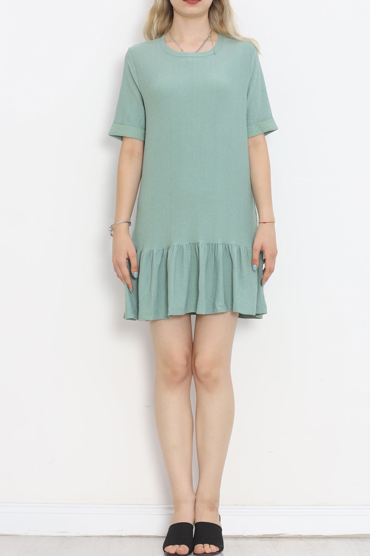 Kısa Kol Bürümcük Elbise Mint