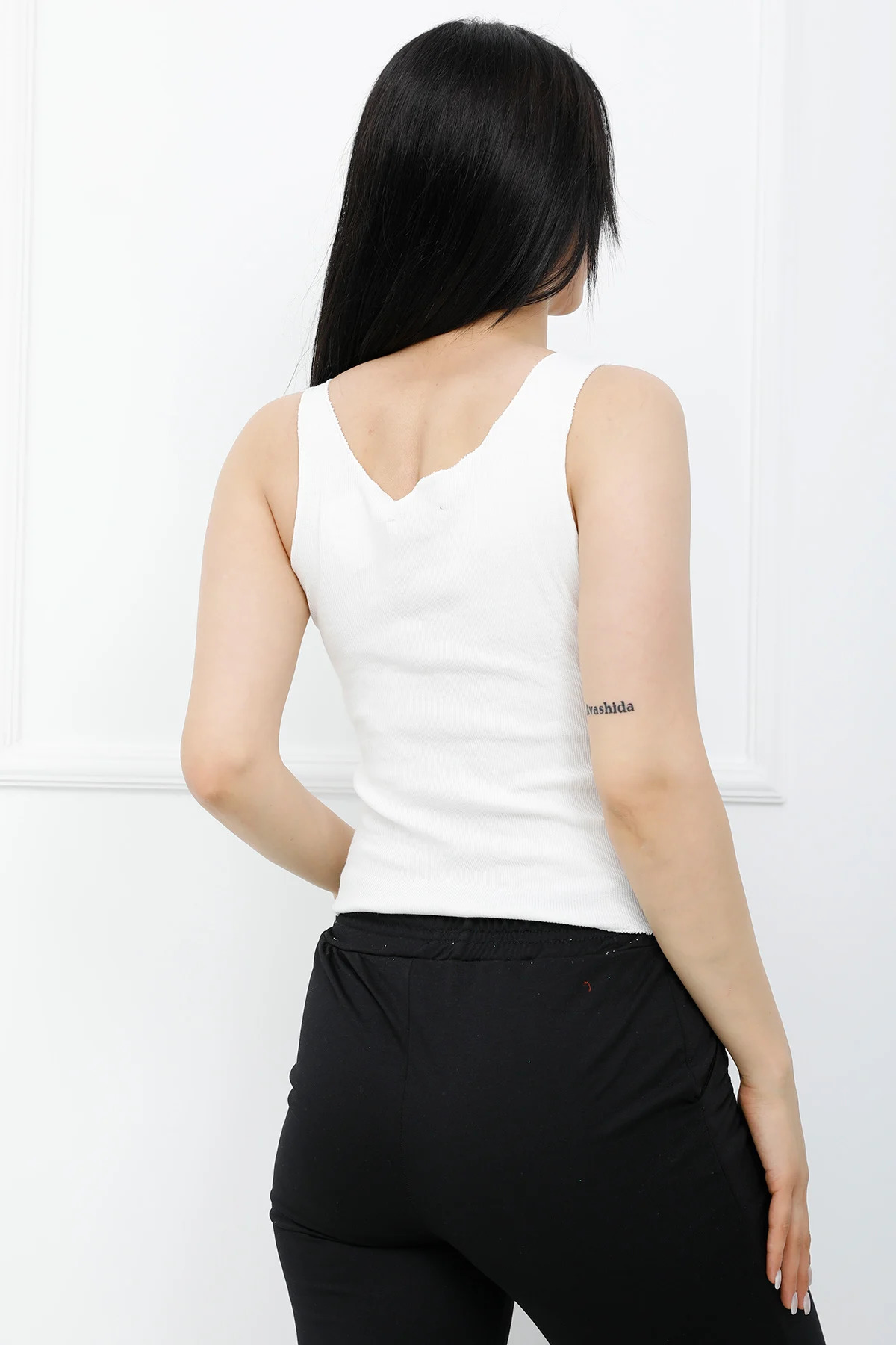 Sahte Düğmeli Askılı Bady Ekru - P-020496