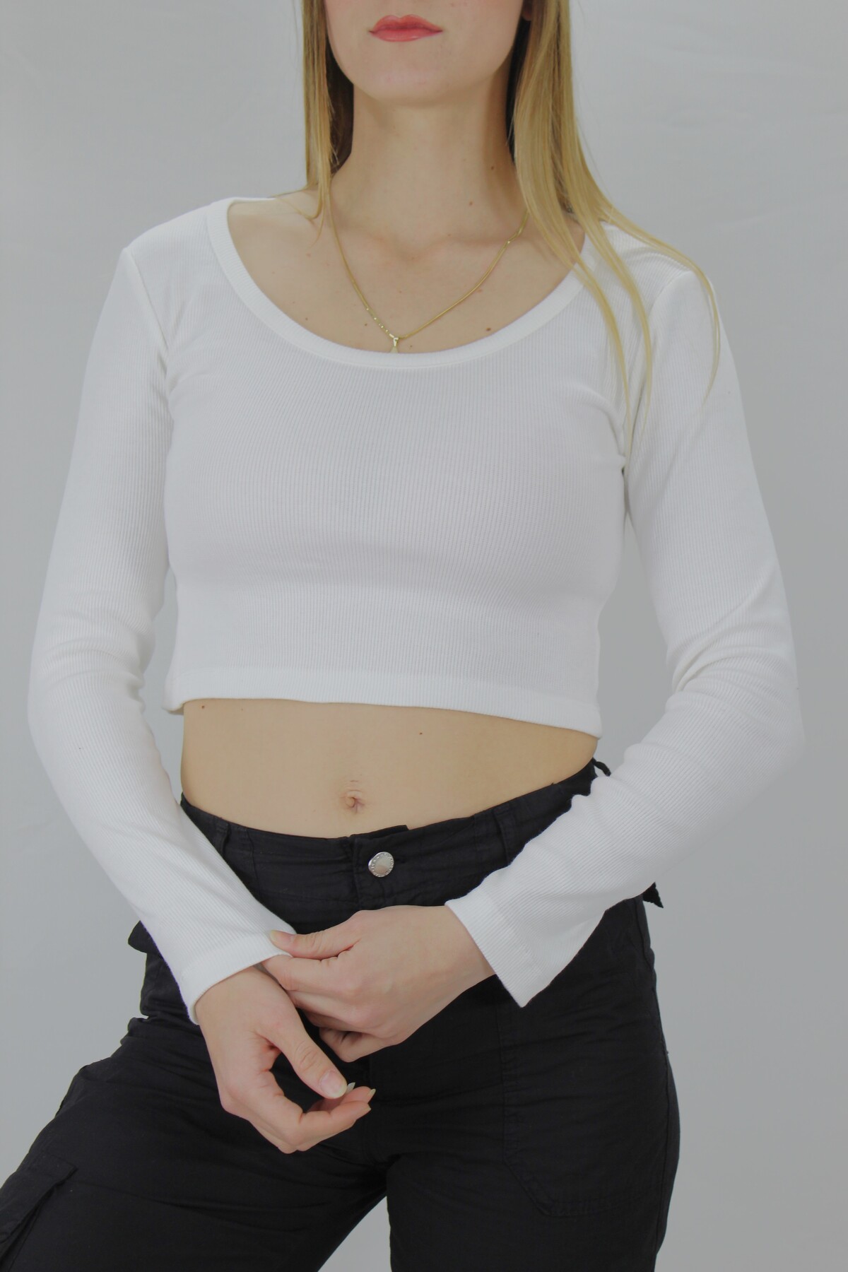 U Yaka Kaşkorse Bluz Ekru